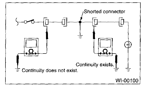 Disconnect all affected connectors, and check continuity between each connector and ground. When ohmmeter indicates continuity between a particular connector and ground, that connector is shorted.