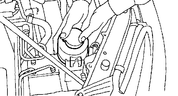 ^ Disconnect hose with its end wrapped with cloth to prevent fuel from splashing.