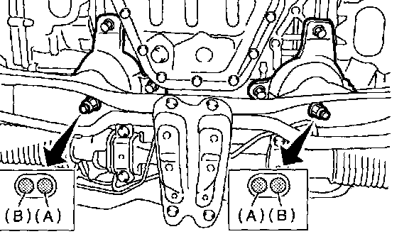 12. Tighten nuts which install front cushion rubber onto crossmember.