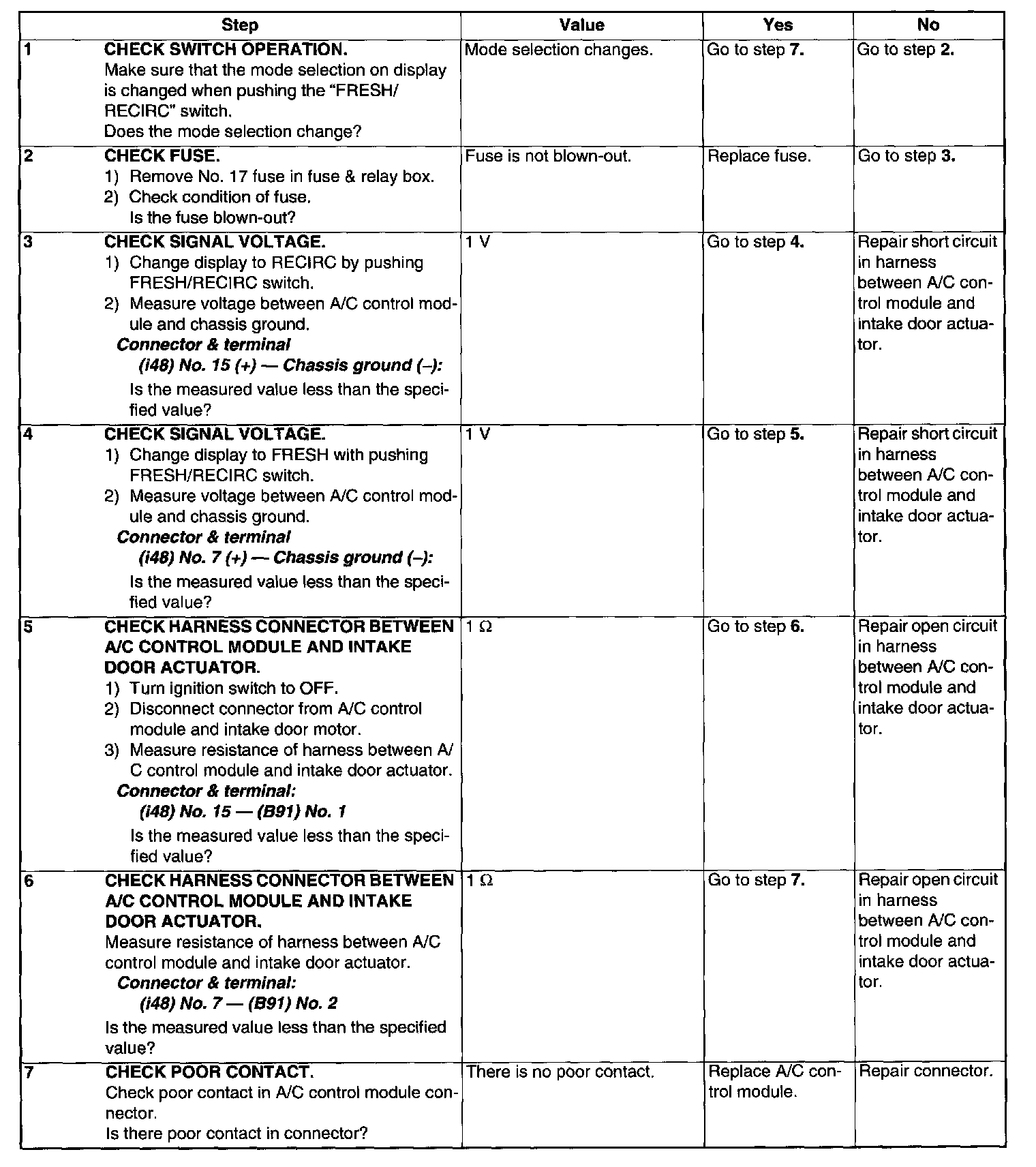 FRESH/RECIRC mode door does not change.