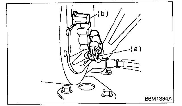 6. Remove nut (b) then detach fog light assembly.