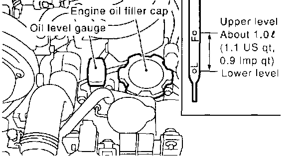 8. After engine stops, recheck the oil level. If necessary, add engine oil up to upper level on level gauge.