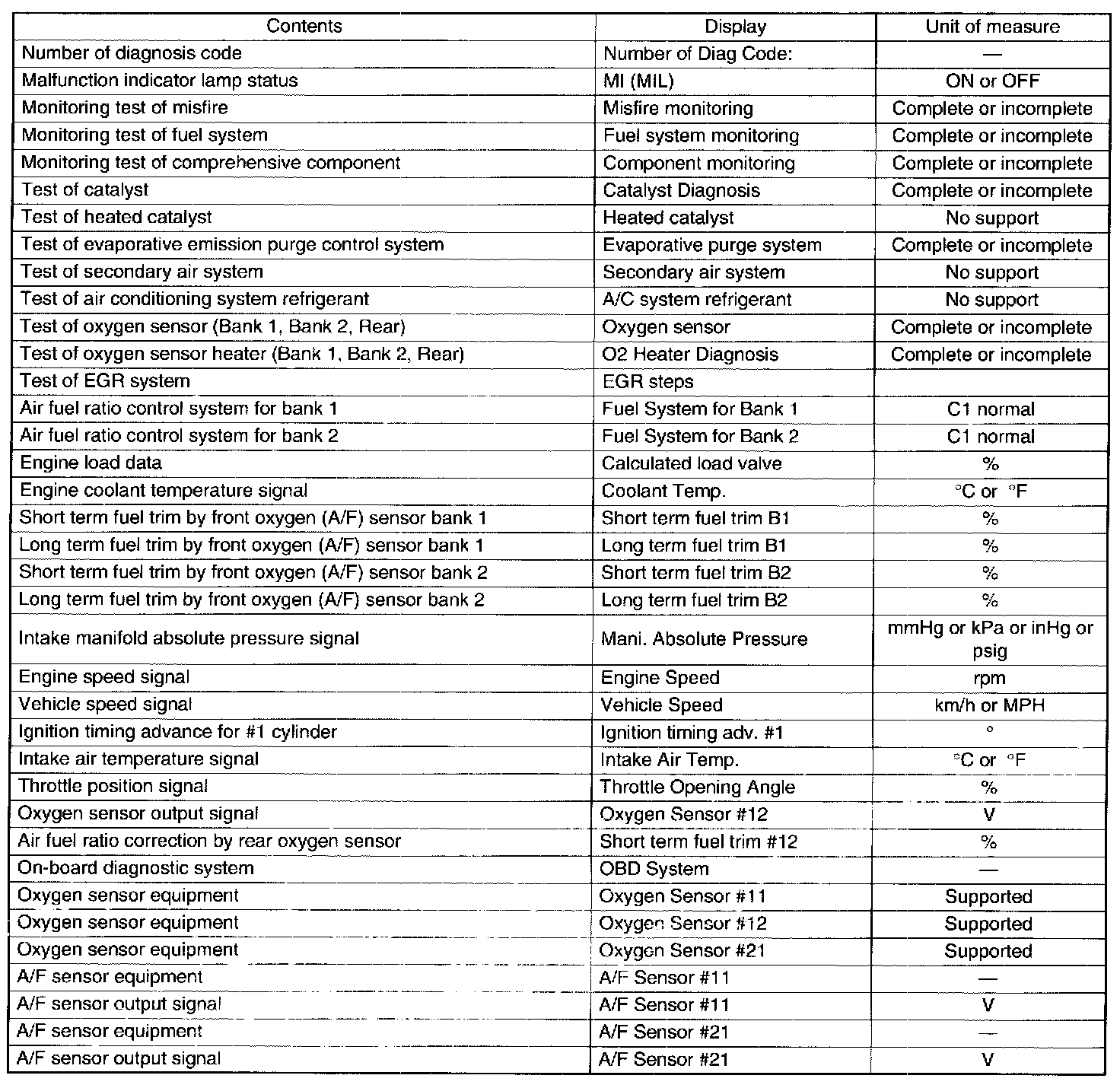 READ CURRENT DATA FOR ENGINE. (OBD MODE)