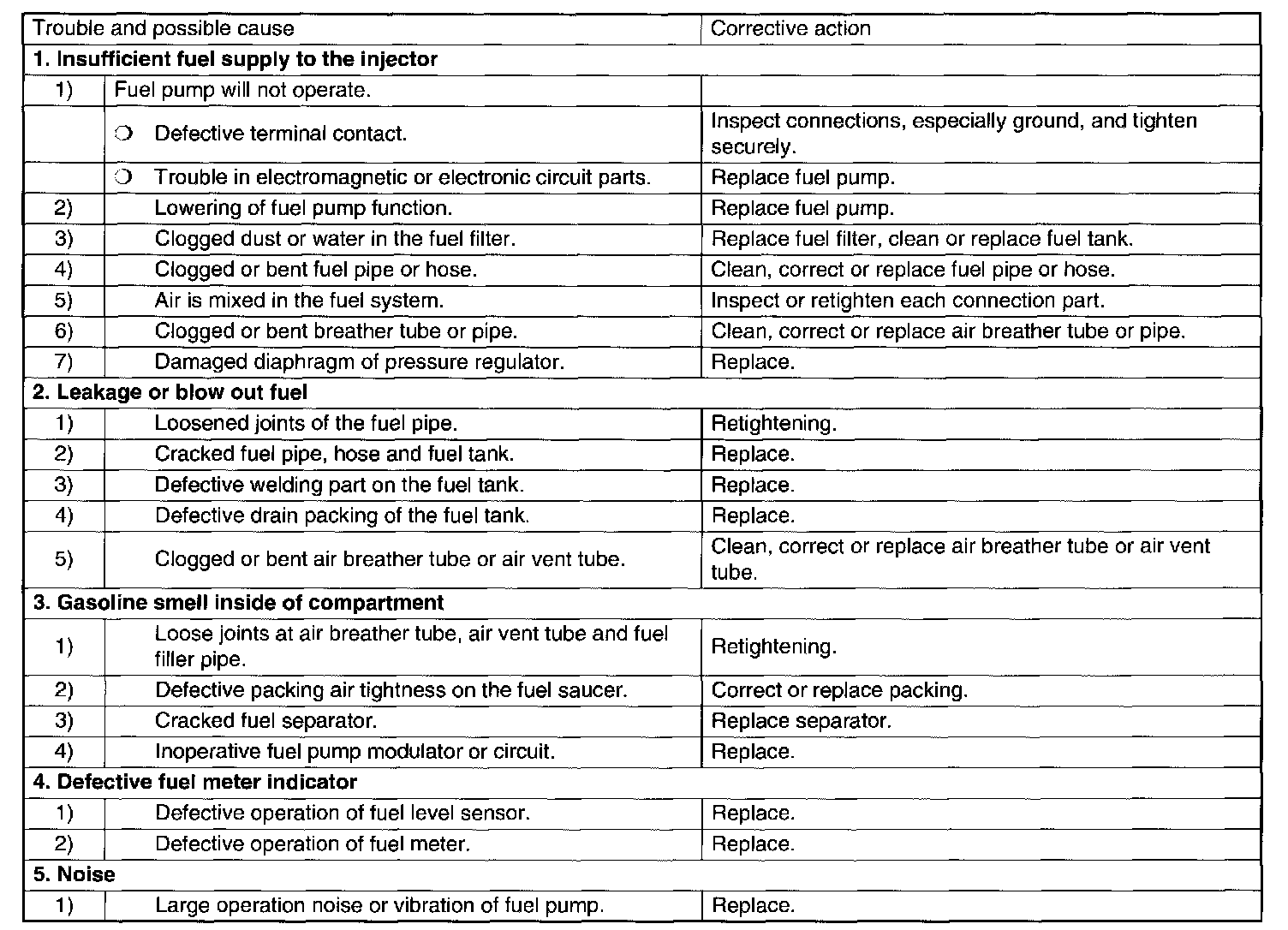 Fuel System Trouble in GeneralInspection: