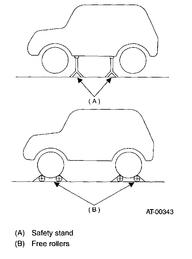 ^ In order to prevent the vehicle from slipping due to vibration, do not place any wooden blocks or similar items between the safety stands and the vehicle.