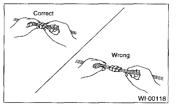 4. When disconnecting a connector, do not pull the wires, but pull while holding the connector body.