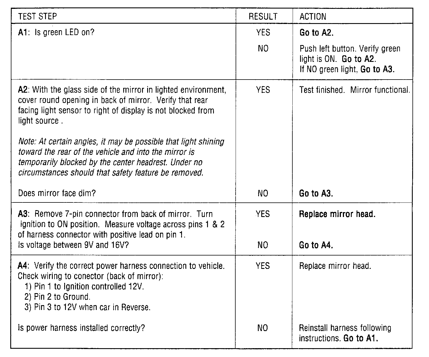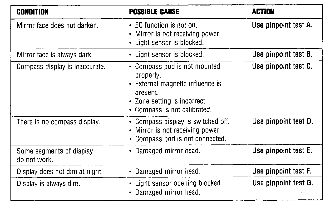 The purpose of this Trouble Shooting Guide is to assist the technician in diagnosis of an Auto Dimming Electrochromic Compass Mirror complaint. The information below will guide you through the diagnosis of the mirror and direct you as to the appropriate correction.