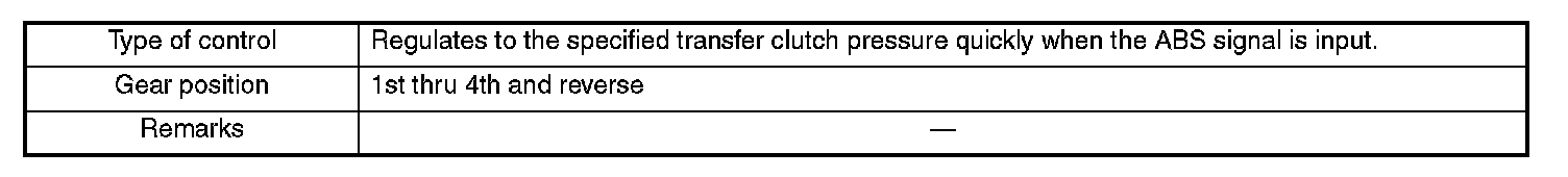 When the brake switch is ON and the throttle valve is fully closed, the TCM makes control to decrease the differential action limiting torque.The ABS control has priority over this control.