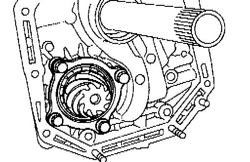 5. After correctly installing the new gasket to the case mating surface, carefully install the oil pump housing assembly. Be careful to avoid hitting the drive pinion against the inside of the case.