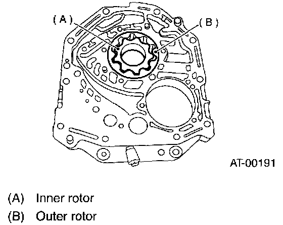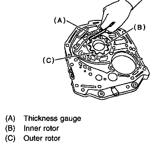 2. Side clearance Set a depth gauge to oil pump housing, then measure oil pump housing-to-rotor clearances.