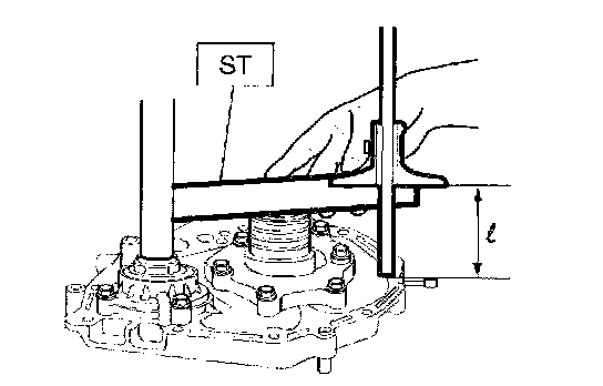 1. Using ST, measure the distance from the transmission case mating surface to the recessed portion of the high clutch drum "L".