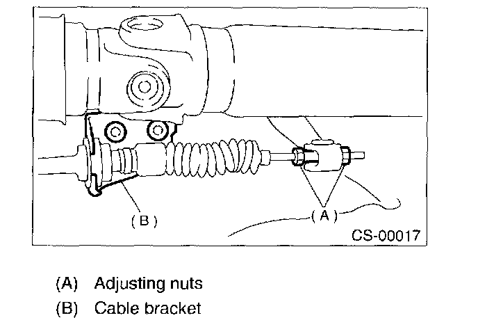 7. Insert the thread portion of the other inner cable and into connector hole of the select lever, and fix the other outer cable end to bracket.