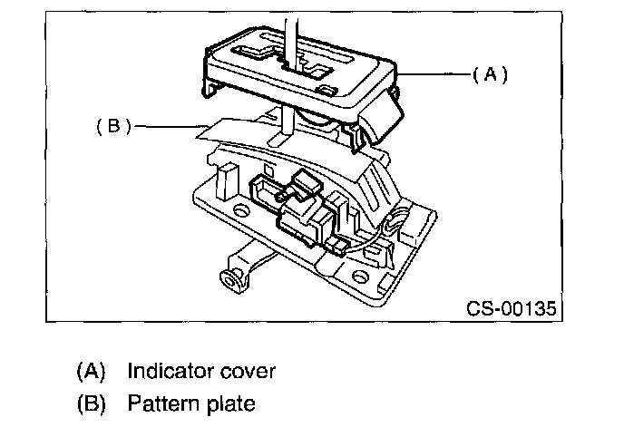 4. After completion of fitting, transfer the select lever to range "P"-"1", then check whether the indicator and select lever agree, whether the pointer and position mark agree and what the operating force is.