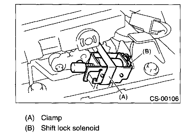 6. Remove the clamp, shift lock solenoid and cushion