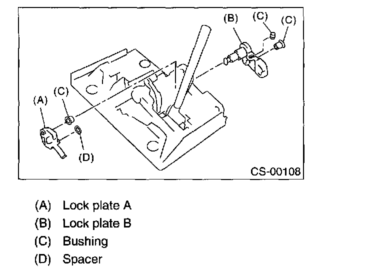 8. Remove the lock plate A, B. bushing and spacer.
