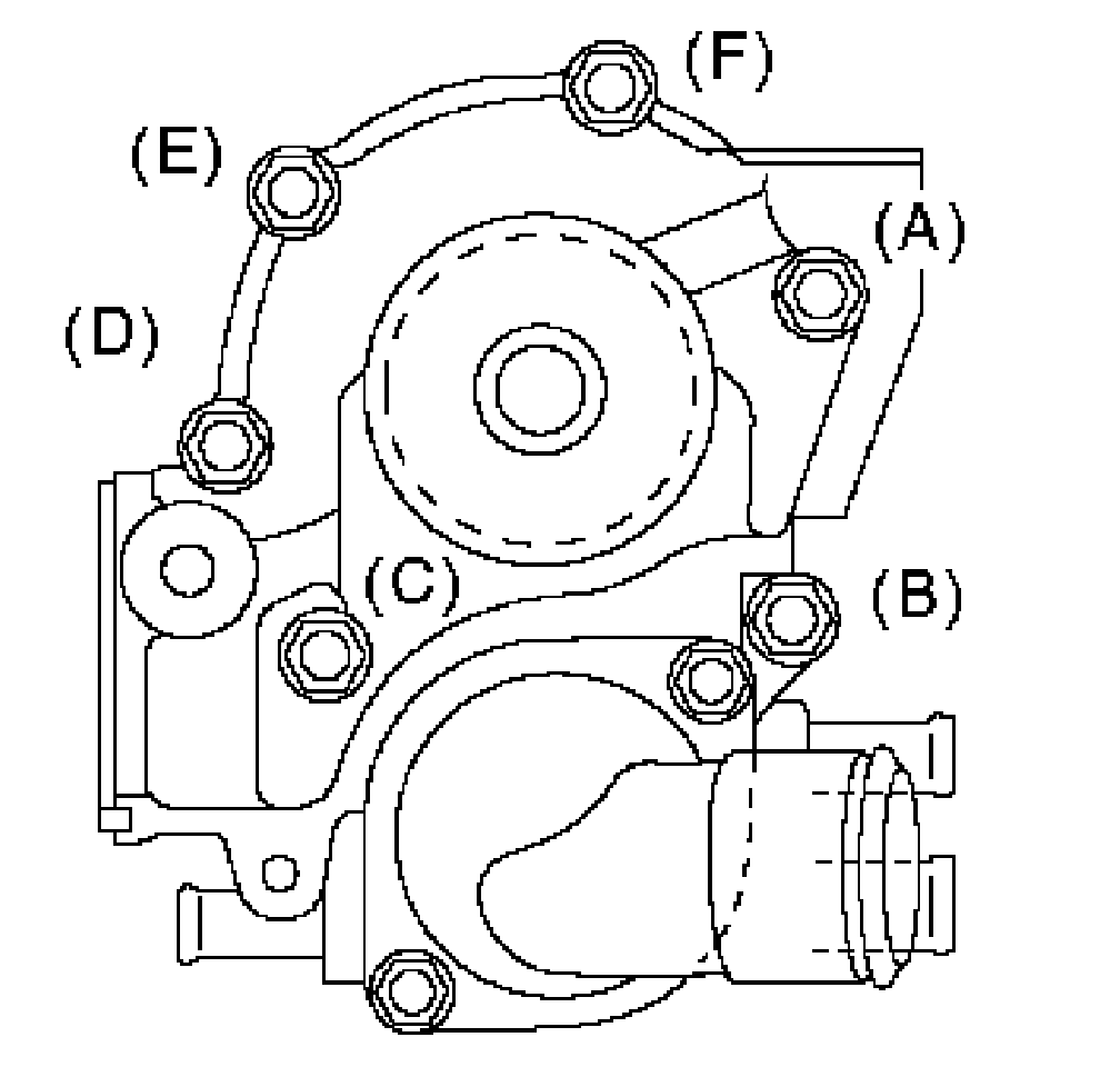 ^ When installing the water pump, tighten the bolts in two stages in alphabetical sequence as shown in the figure