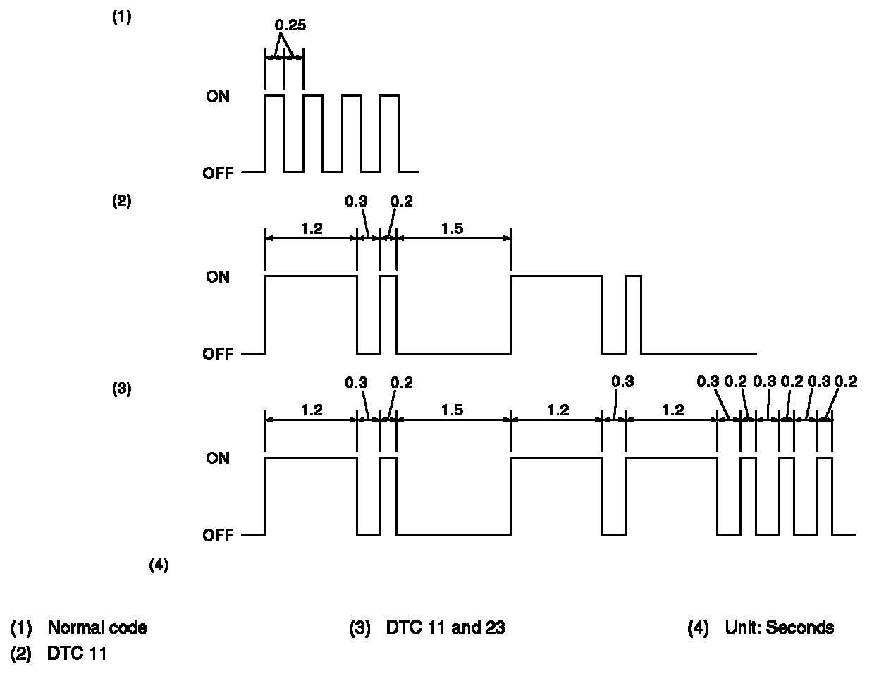 The long segment (1.2 seconds on) indicates a "ten", and the short segment (0.2 seconds on) signifies a "one".