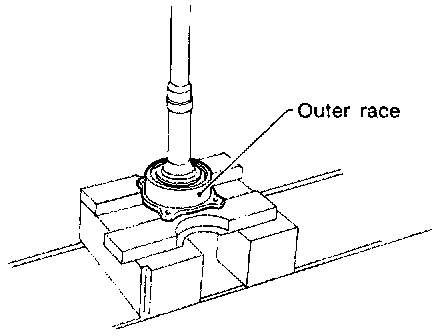 3. Using a press, separate the rear roller bearing and outer race from the shaft.