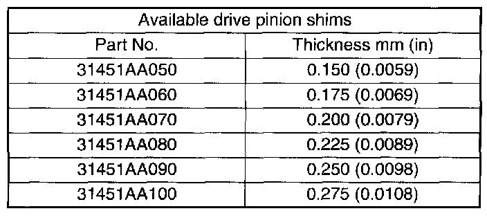 9. The thickness "t" (mm) of the drive pinion shim.