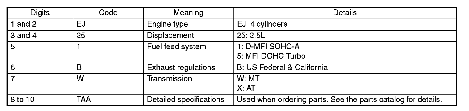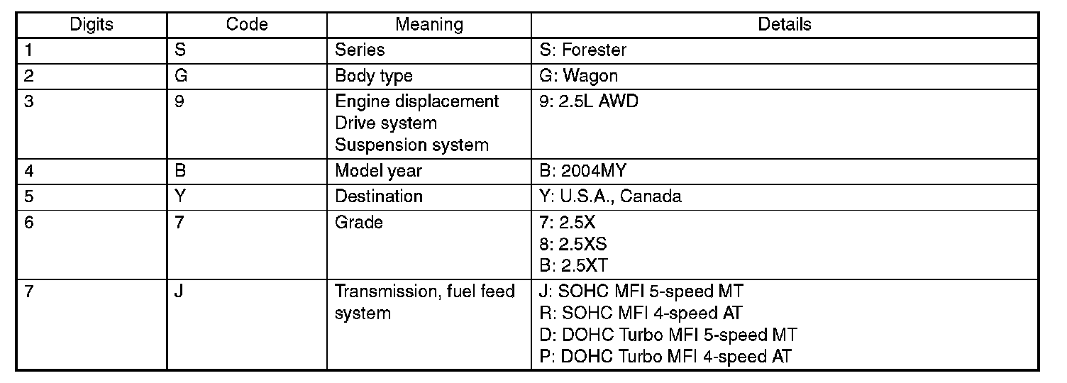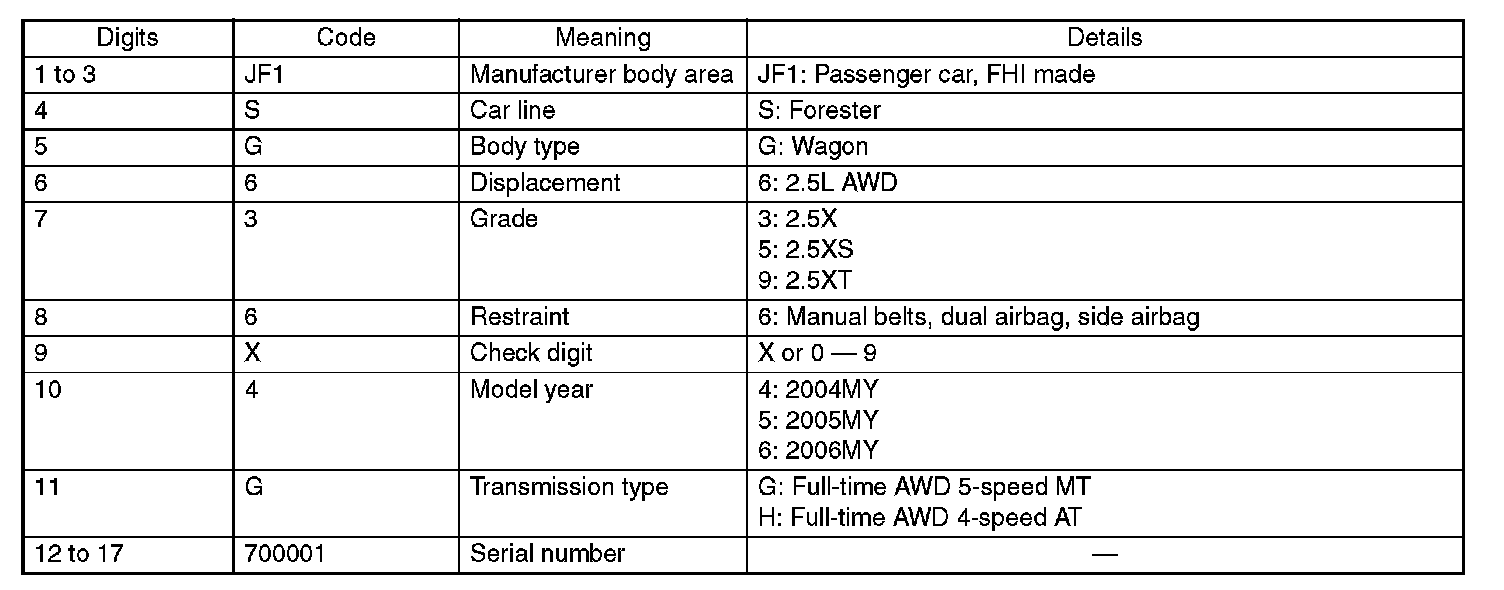 The meaning of the VIN is as shown: