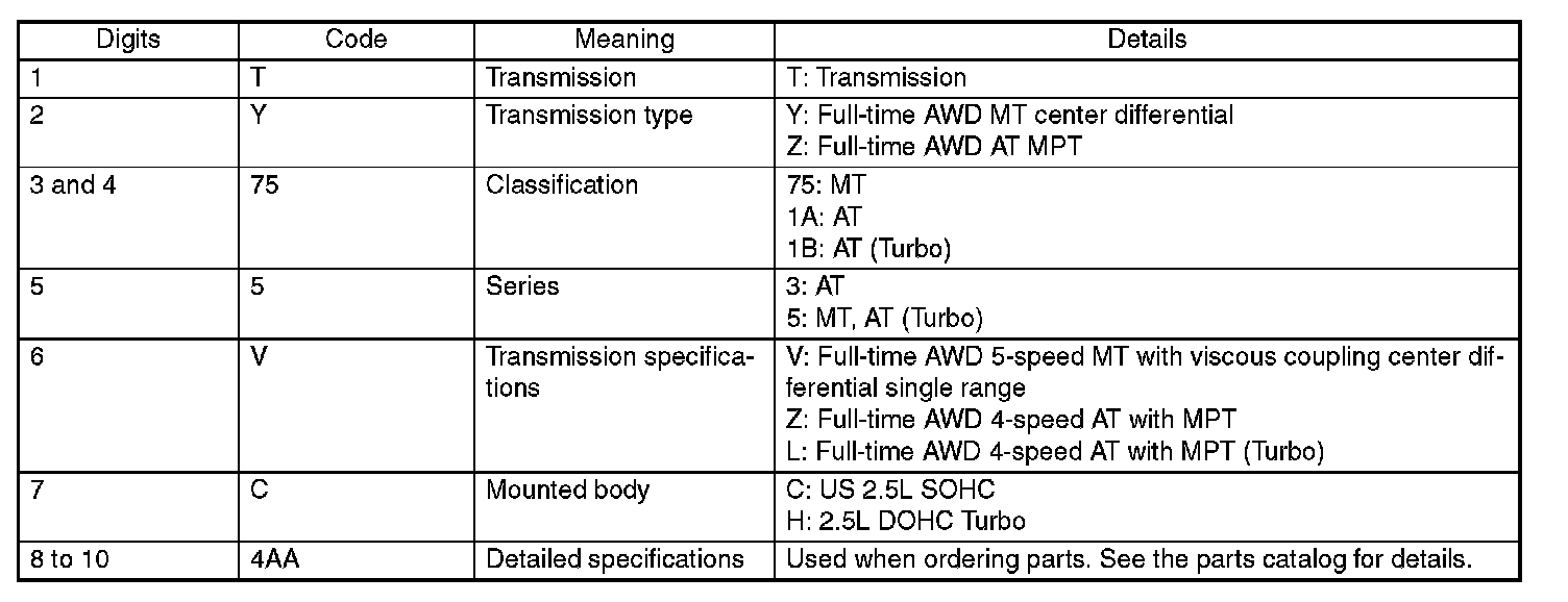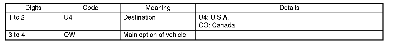 The model number plate indicates: the applied model, the option code, the trim code, the engine type, the transmission type, and the exterior color code. This information is helpful when placing orders for parts.