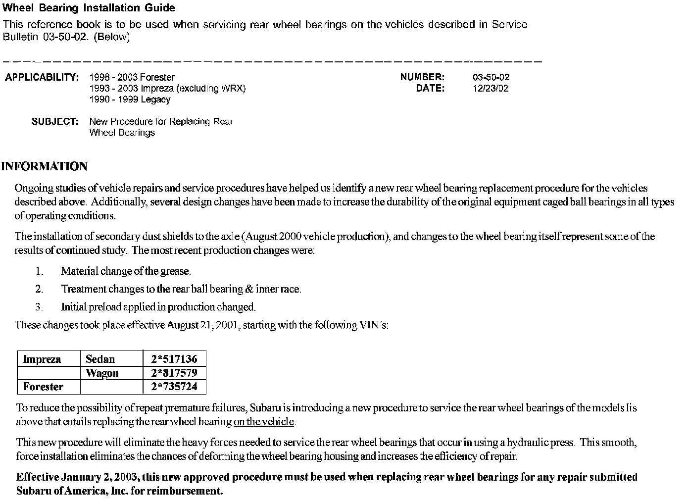 Revised Wheel Bearing Installation Guide - From Publication MSA5P0401C