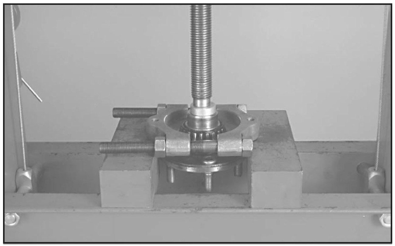 5. Clean bearing housing before installing new bearing. Support the bearing housing with 927430000 and position the bearing assembly over the opening. Using 927440000 begin applying pressure to the bearing.