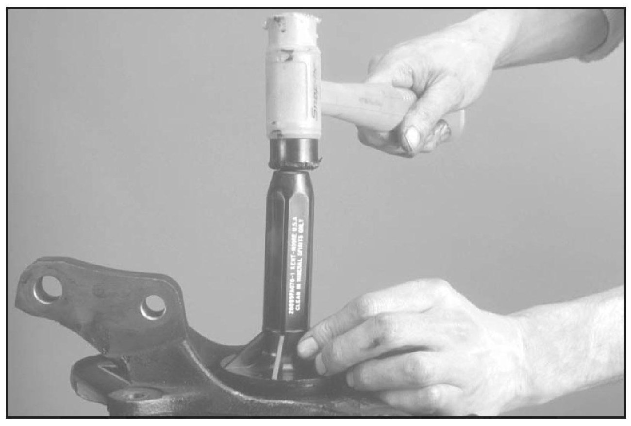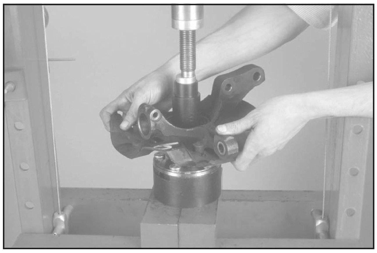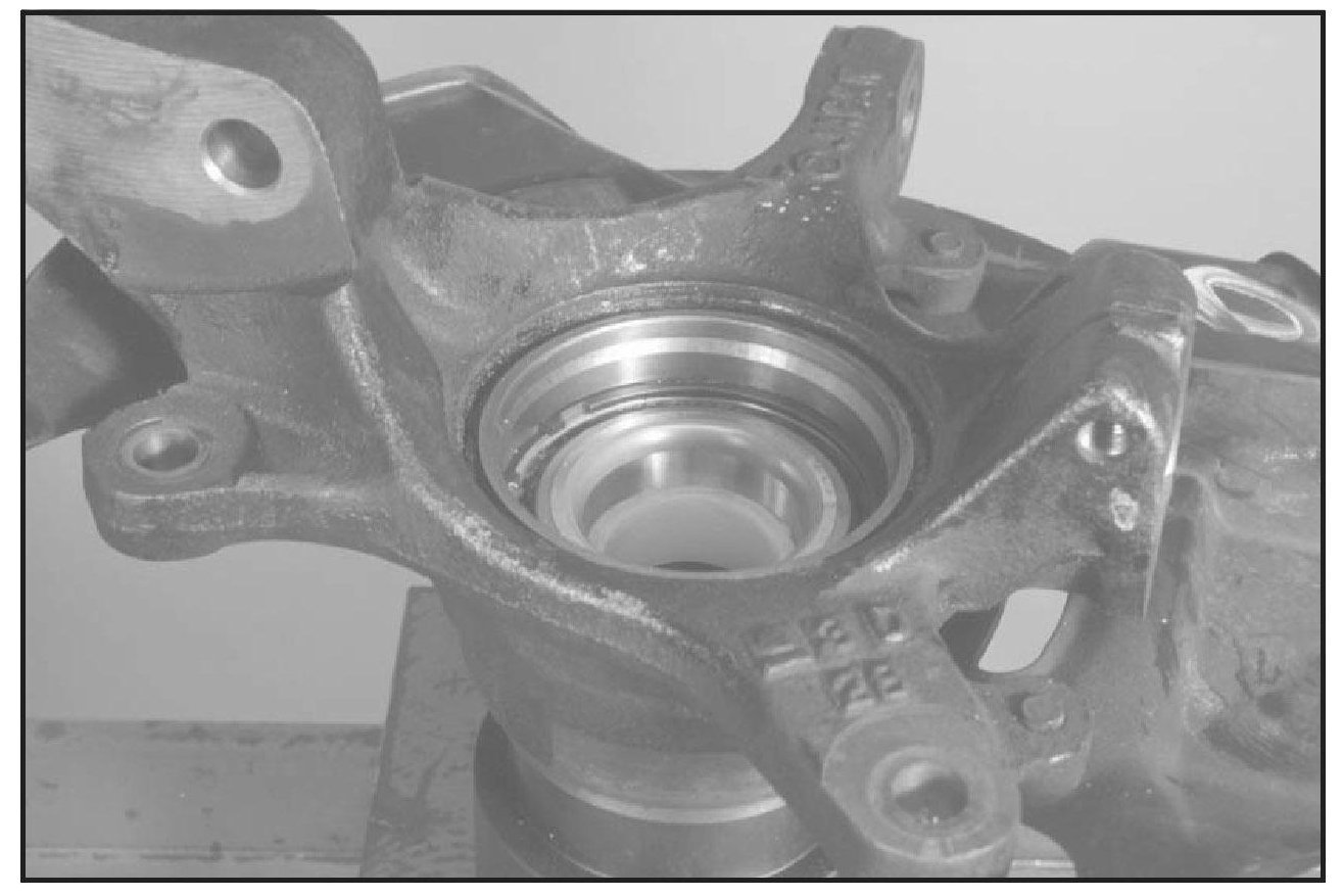 This procedure begins with the front wheel bearing housing removed from the vehicle. See Wheel Hub: Service and Repair for your particular application.