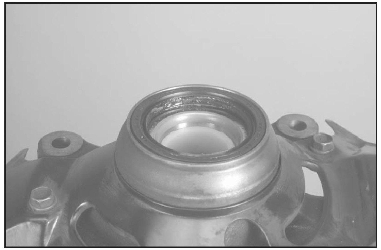 6. Move the bearing housing back and forth while applying pressure. The bearing will bottom out against a ridge machined into the bearing housing.