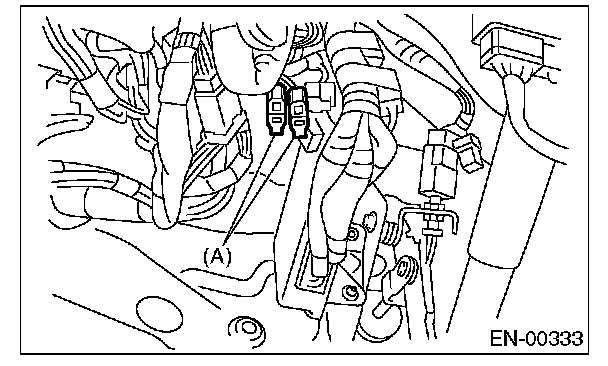 4. Connect the test mode connector (A) at the lower portion of instrument panel (on the driver's side).
