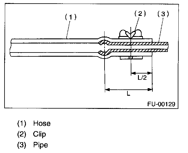 2. Connect the fuel delivery hose to the pipe with an overlap of 20 to 25 mm (0.79 to 0.98 in).