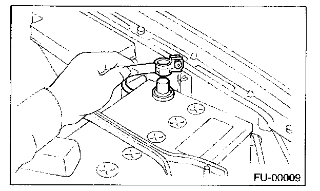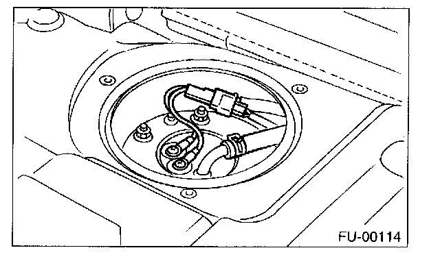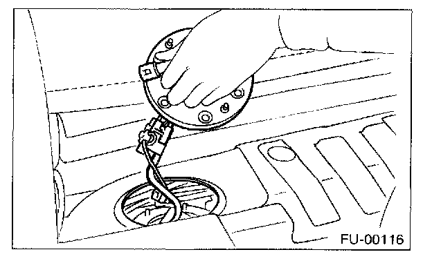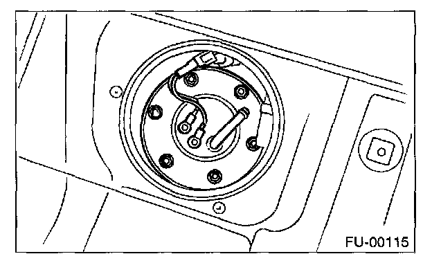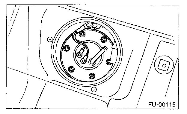 9. Remove the bolts which install the fuel sub meter unit on the fuel tank.