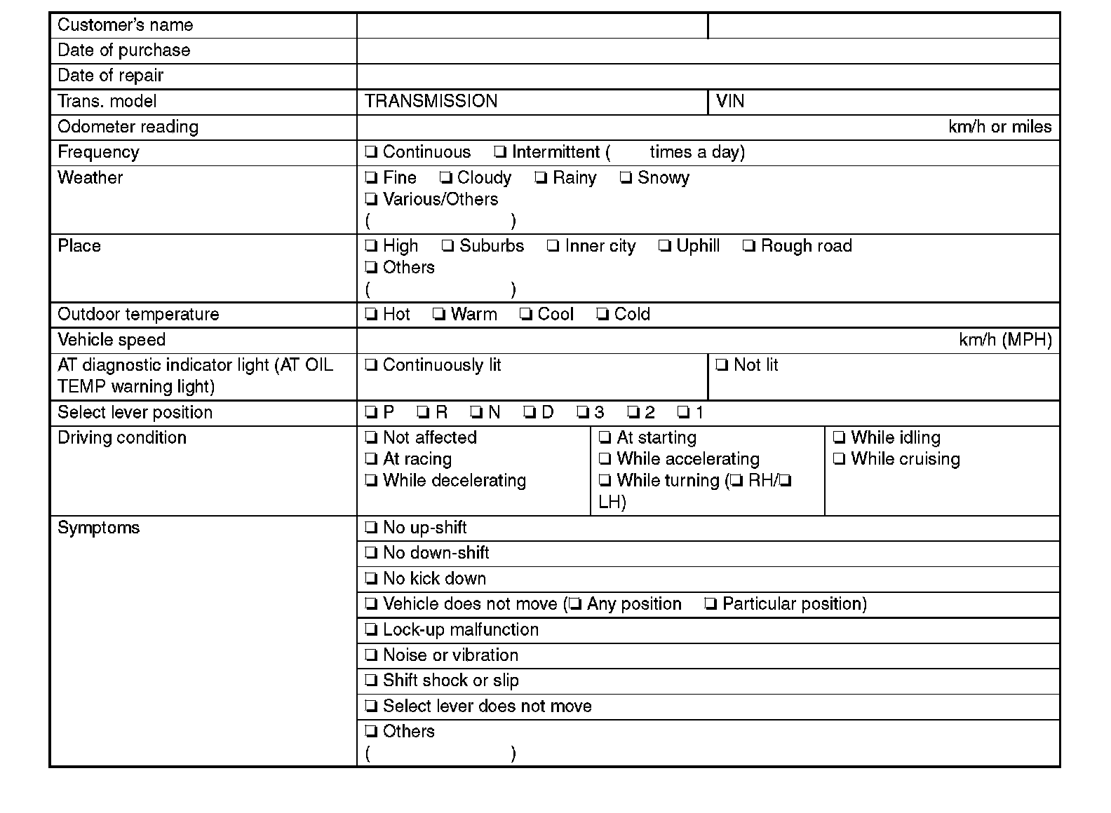 A/T Customer Interview Check List: