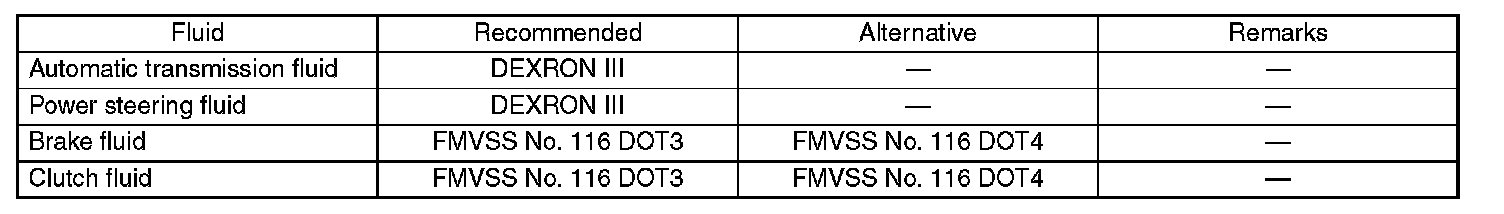 Use the fluids specified in the table. Do not mix two different kinds or makes of fluid.