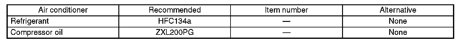 Standard air conditioners on Subaru vehicles use HFC134a refrigerant. Do not mix it with other refrigerants. Also, do not use any air compressor oil except for ZXL200PG.