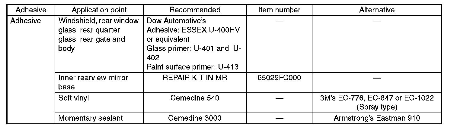Use the adhesives shown in the table, or equivalent.