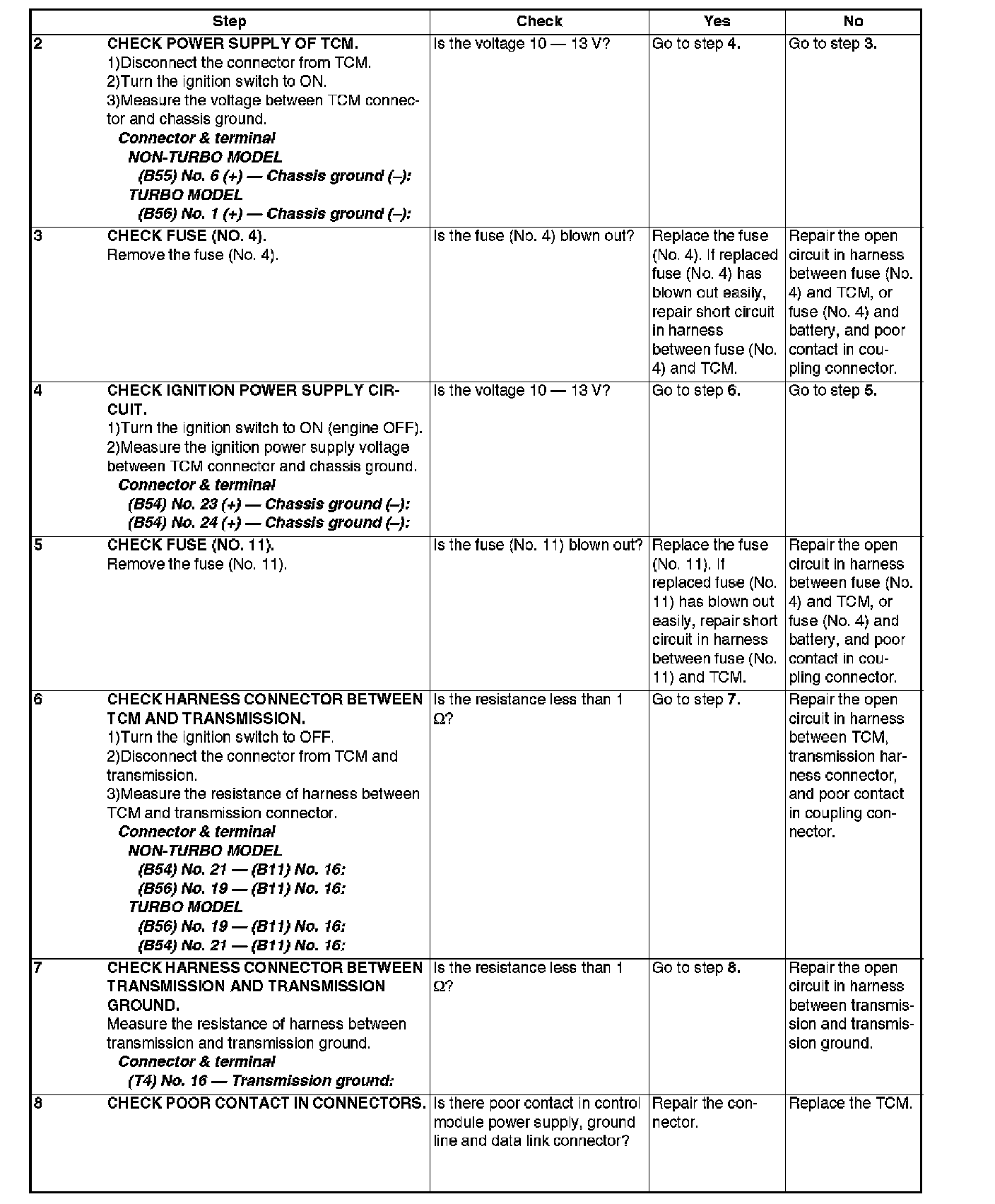 AT OIL TEMP WARNING LIGHT DOES NOT COME ON OR GO OFFSteps 1-8: