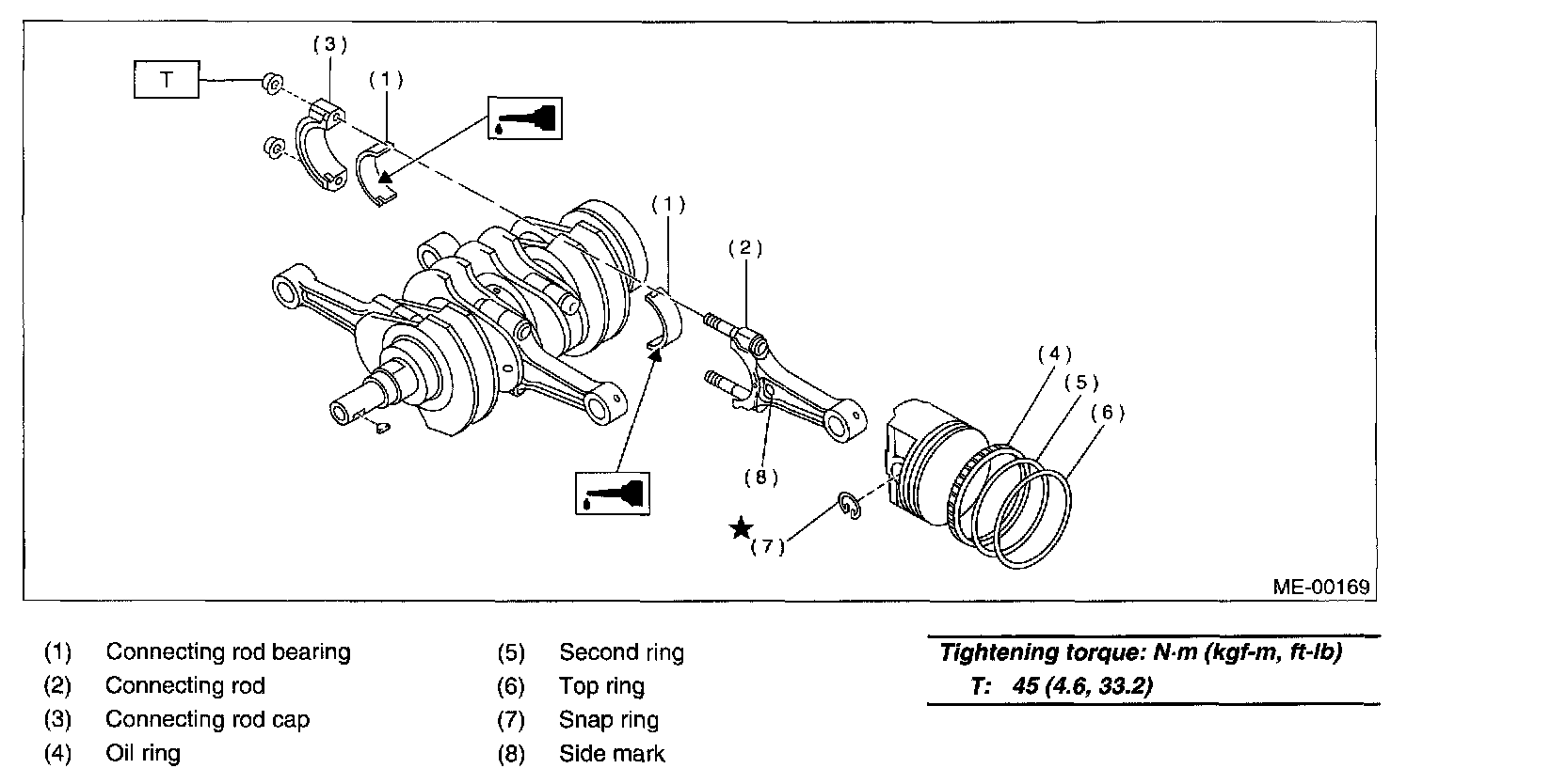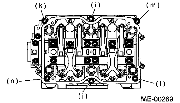 2) Tighten all bolts 29 Nm (3.0 kgf-m, 22 ft. lbs.) in alphabetical sequence. Then tighten 69 Nm (7.0 kgf-m, 51 ft. lbs.) in alphabetical sequence.