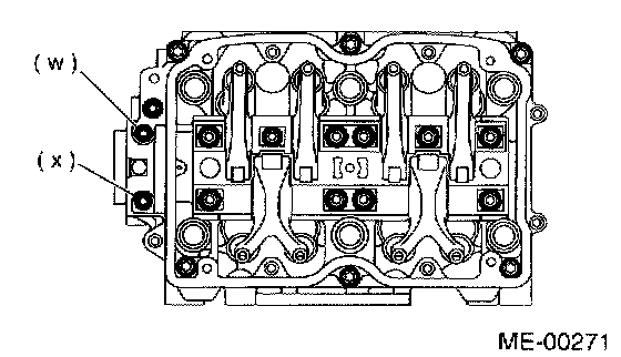 7) Tighten bolts (w) through (x) in alphabetical sequence 10 Nm (1.0 kgf-m, 7.2 ft. lbs.)
