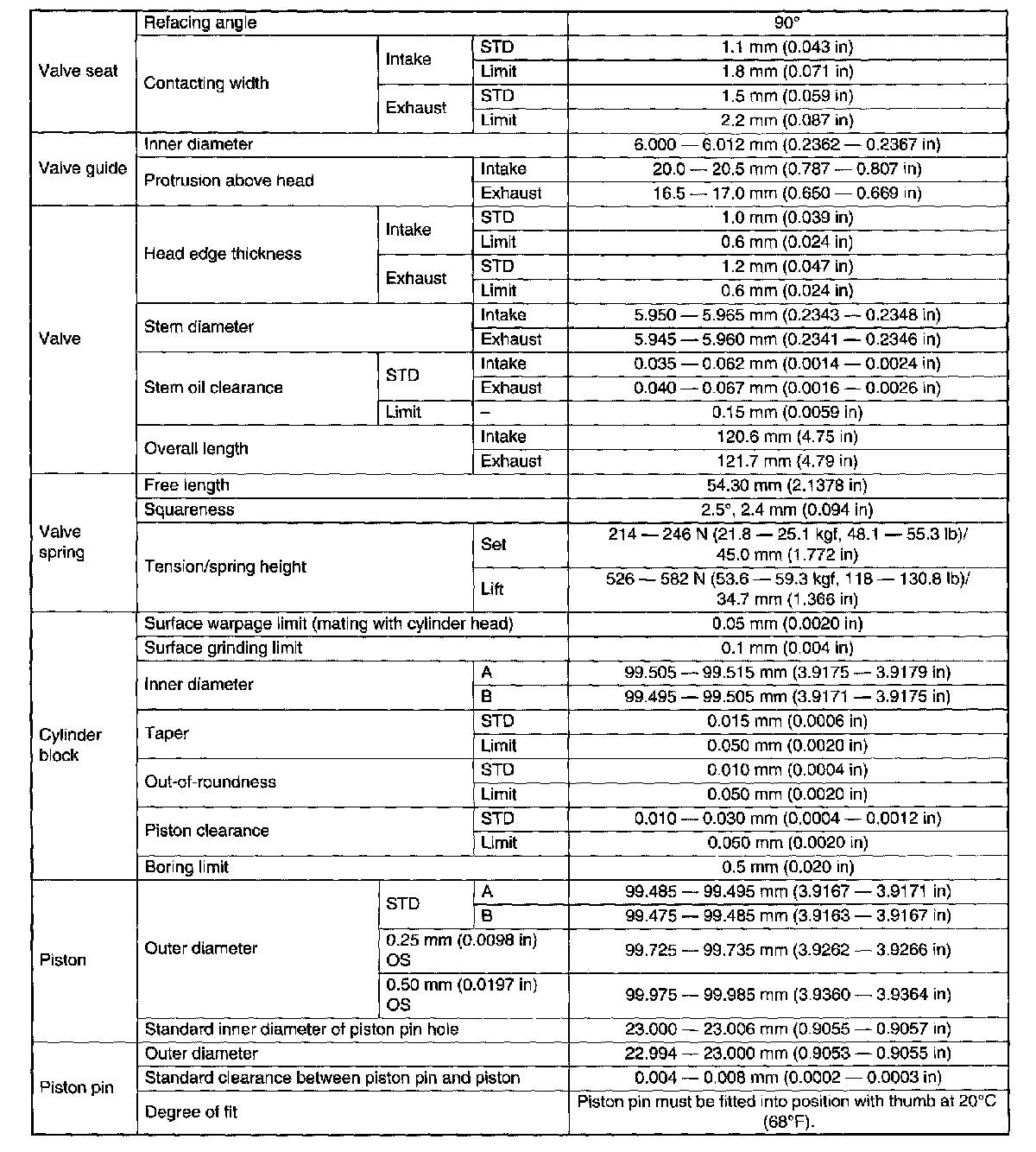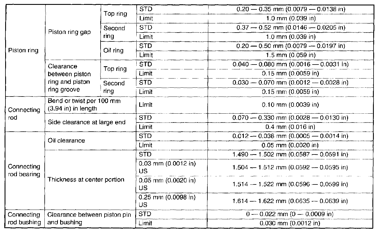 SPECIFICATIONSNOTE: US: Undersize, OS: Oversize