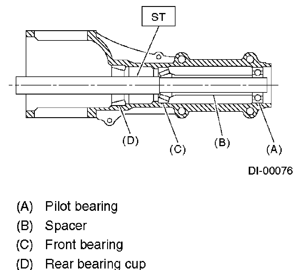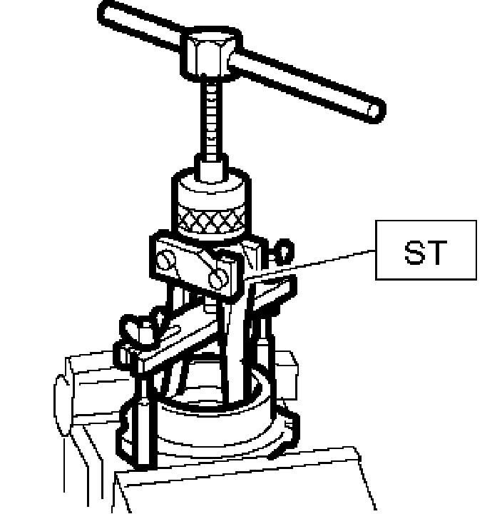 17. Remove the pilot bearing together with front bearing cone using ST.