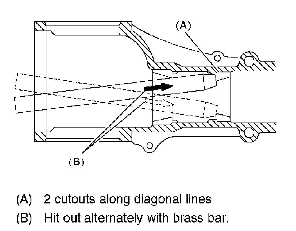 18. When replacing the bearings, hit out the from bearing cup and rear bearing cup in this order out case by using a brass bar.