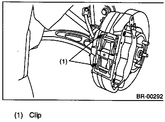 1) Apply a thin coat of Molykote AS880N (Part No. 26298AC000) to the frictional portion between pad and pad clip.