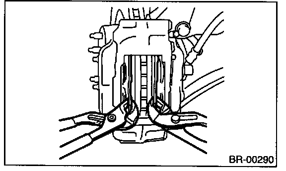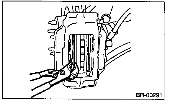 NOTE: If it is difficult to push the piston during pad replacement, loosen the air bleeder to facilitate work.