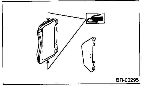 2) Apply a thin coat of Molykote AS880N (Part No. 26298AC000) to the frictional portion between pad and pad inner shim. (Non-turbo model)