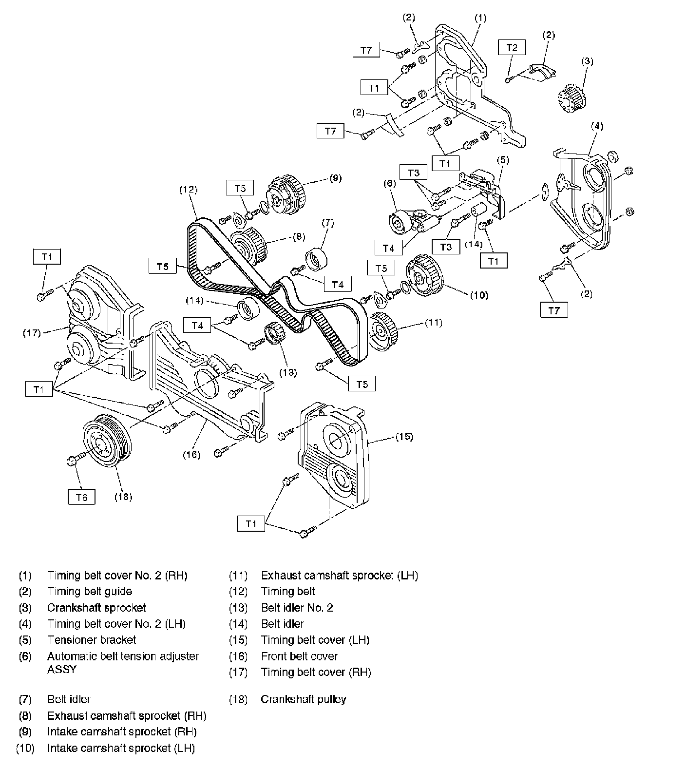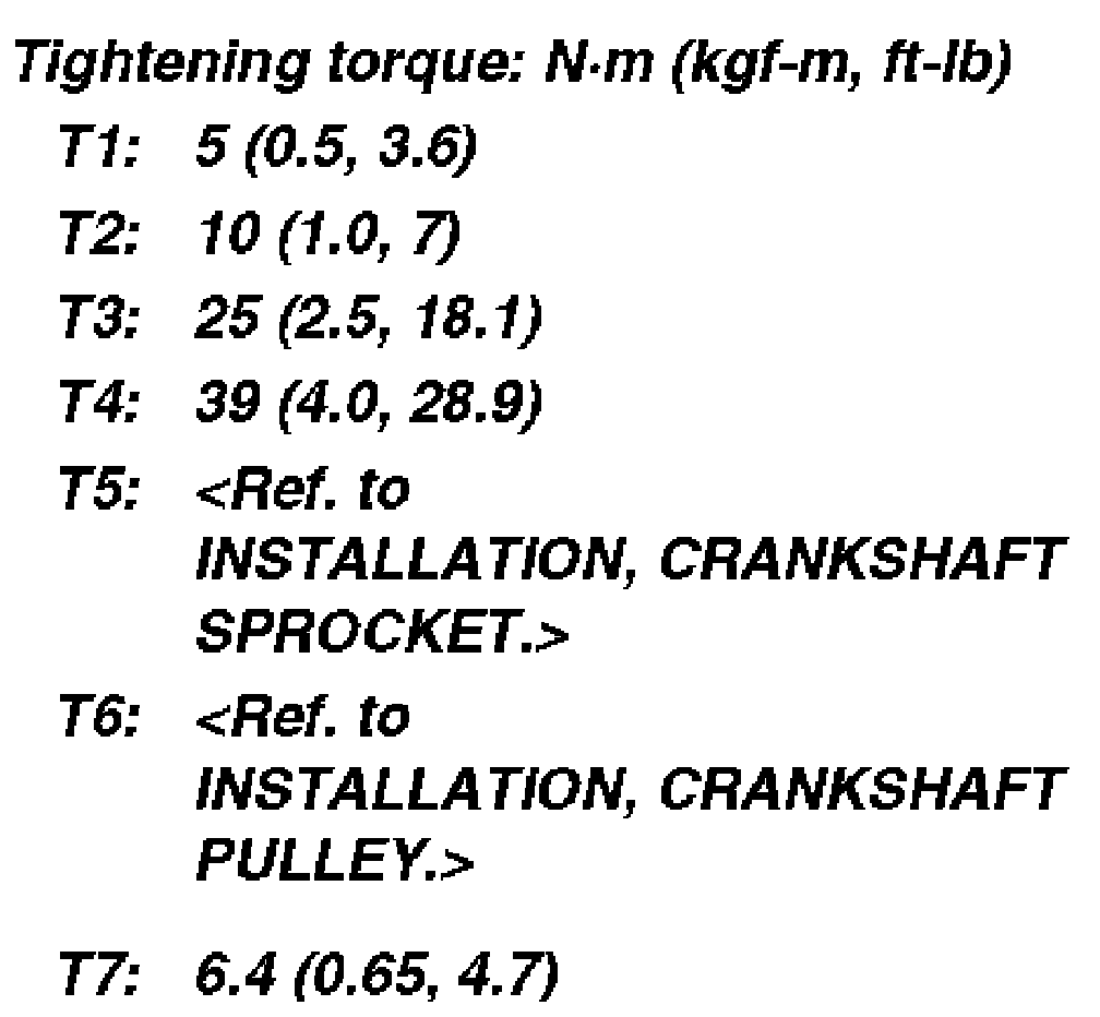 Belt cover No.2 (LH) 5 Nm (0.5 kgf-cm, 3.6 ft. lbs.)