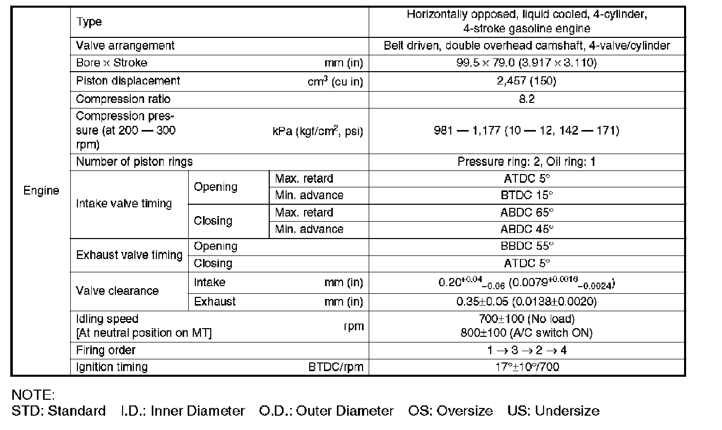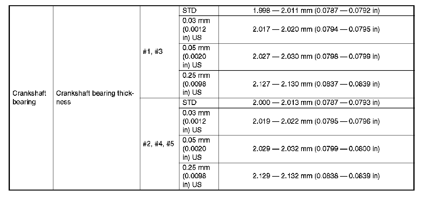 NOTE: STD: Standard I.D.: Inner Diameter O.D.: Outer Diameter OS: Oversize US: Undersize