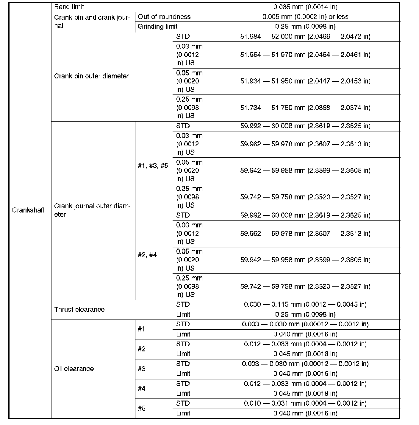 0.05 mm (0.0020 inch) US 51.934 - 51.950 mm (2.0447 - 2.0453 inch)
