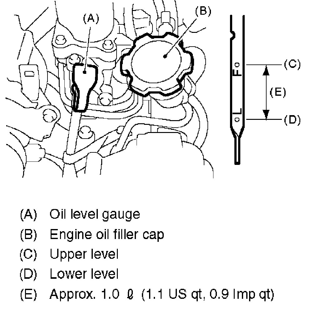NOTE: To prevent overfilling the engine oil, do not add oil above "F" line when the engine is cold.