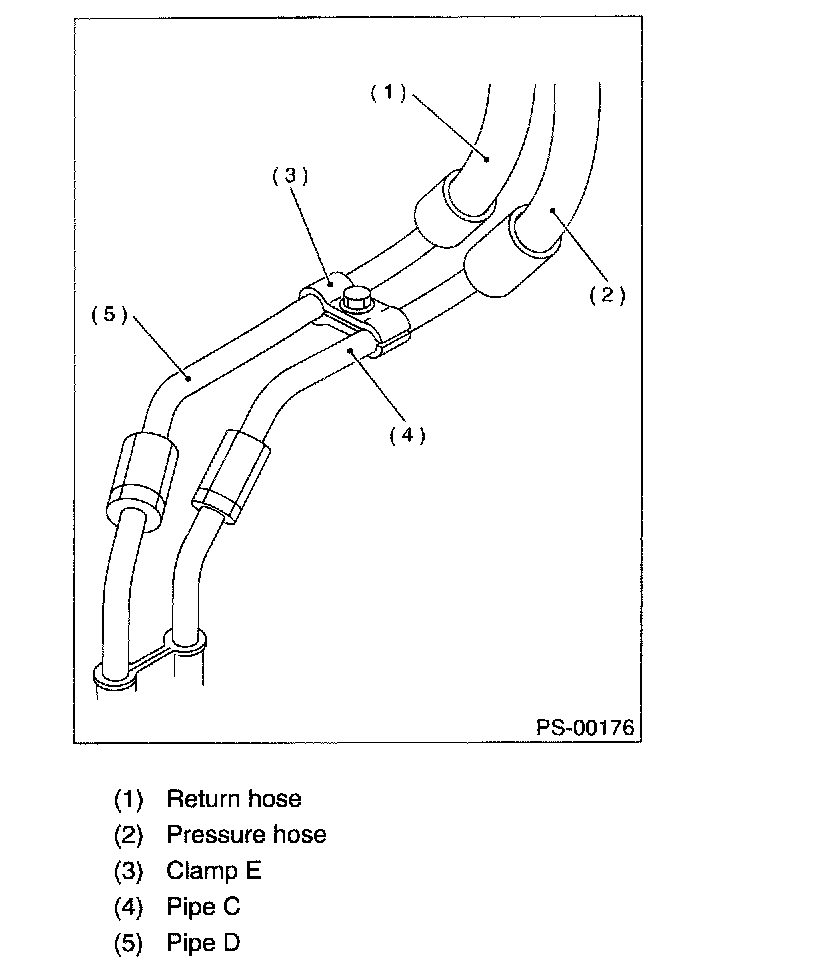 CAUTION: Visually check that hose between tank and pipe D is free from bending or twisting.